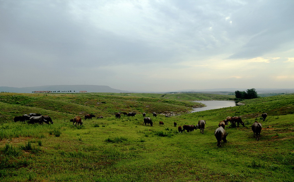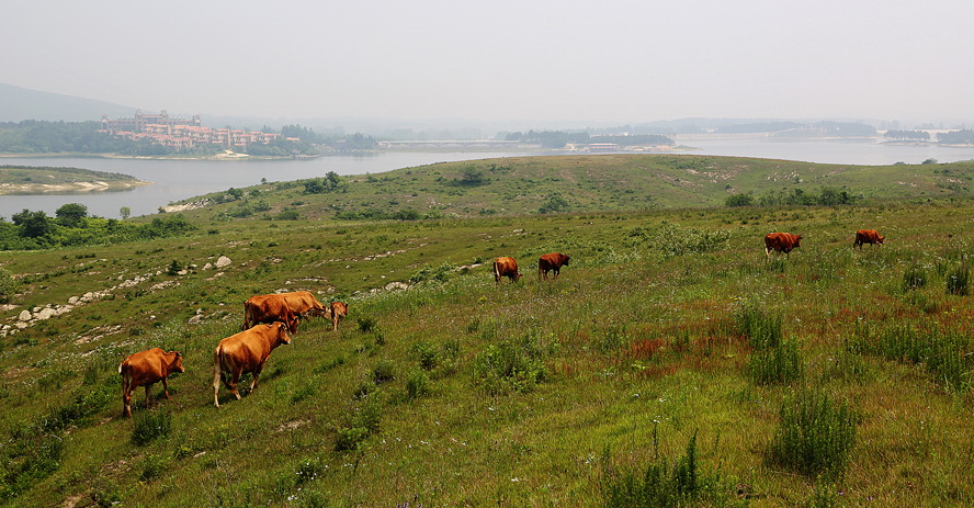 原名黄寨草场,位于石坝镇境内,面积近1万亩。周围有万亩林木环绕,是无污染的天然丘陵牧场。草场北侧与跃龙湖相邻,环草场的是万余亩丘陵林区。草场60年代是国家万匹军马养殖基地和安徽省中国秦川种牛繁育基地。置身草场区域,感受连绵不绝的绿色丘陵,视野开阔,广袤的草场高低起伏,不时出现的黄牛、水牛成群结对悠闲噬草,许多白鹭相伴相随,相映成趣。