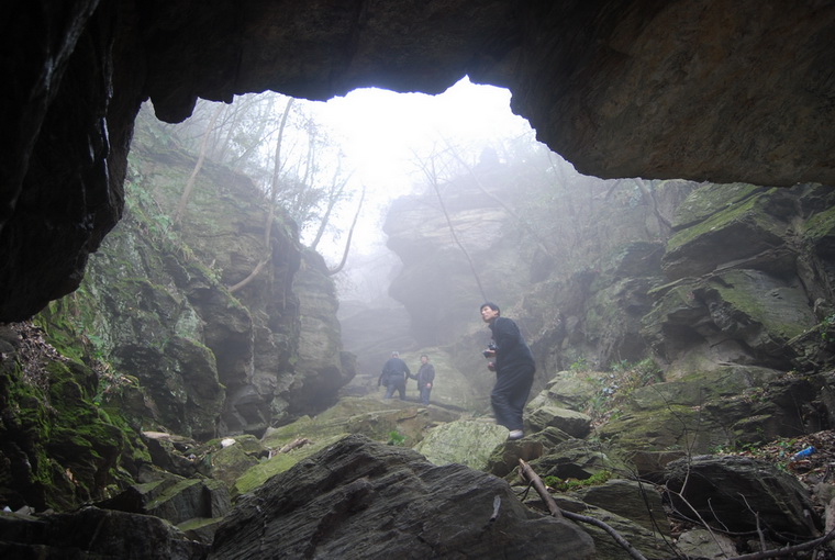 位于老嘉山,巨石横亘山崖之间的仙人桥,位于二四五部队南峡谷中上部,高约