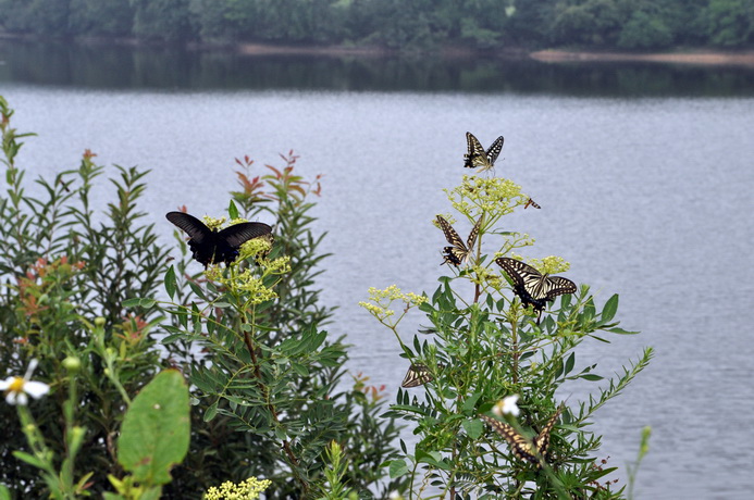位于老嘉山,因彩蝶麇集,常见六蝶为组,或栖或舞,故名六蝶泉。泉水清澈,倒映着青山,绿水青山相依,蝴蝶翩跹,仿佛人间仙境。